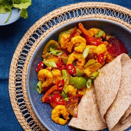 Prawn Curry Sauce Cooked with Coconuts Milk in Curry Sauce Prepared With Onions Tomatoes and a Mixture Of Oriental Herbs