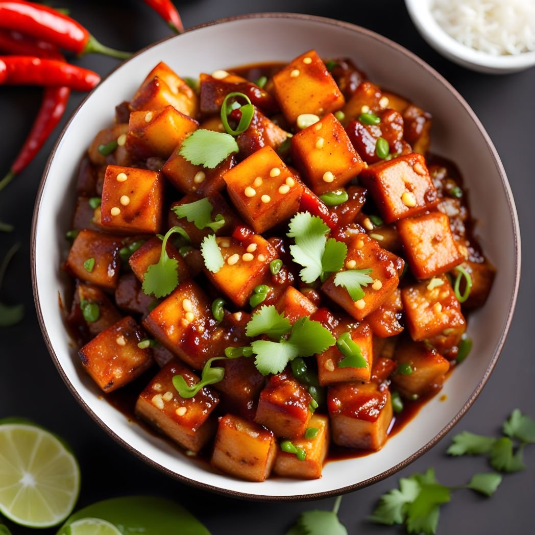 Paneer chilli cooked with garlic, ginger sweet chilli sauce and capsicum.